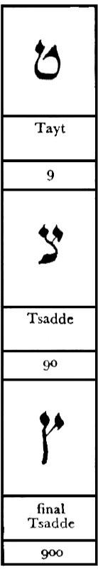 (9.90.900: Archetypeq Tayt of feminine~energyingsq, then Tsadde its complementaryq~antinomialq projectionq, amd finally (rather ultimately) its cosmic~energyq exaltationq finalTsadde.) (9.10.400) Tsadde~Dallet~Yod (90.4.10) |